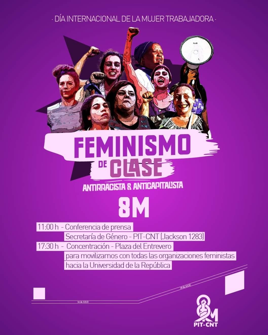 Conmemoramos el Día Internacional de la Mujer Trabajadora bajo la consigna «Feminismo de clase, antirracista y anticapitalista» el PIT-CNT para y convoca a participar activamente de ésta fecha de lucha por una sociedad más justa e igualitaria.