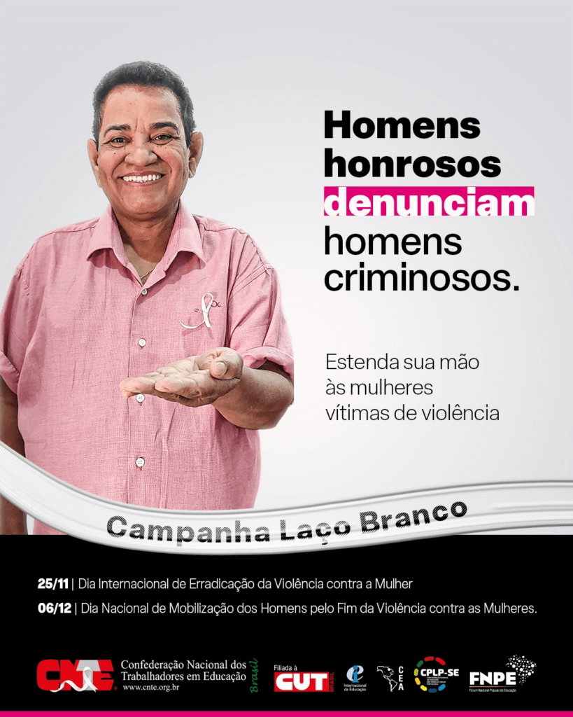 De 25/11 a 10/12/23, a CNTE e suas entidades filiadas convocam toda a sociedade para ficar ainda mais atenta aos sinais de violência de violência contra a mulher.